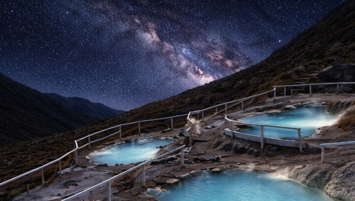 Escápate al paraíso natural de las Termas Colina donde te mostrares olas estrellas en este tour nocturno, podras relajarte en aguas termales mirando las estrellas, rodeadas de las imponentes montañas en medio de La Cordillera de los Andes . ¡Una experiencia de bienestar única que no puedes perderte!